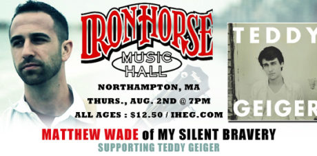 New show announced! Matthew Wade of My Silent Bravery will be supporting singer/songwriter, TEDDY GEIGER! The all ages perfomance will take place at 7PM on August 2nd at Iron Horse Music Hall in Northampton, MA. For tickets and more information, click here.