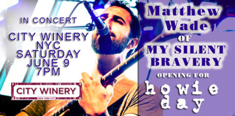 Matthew Wade of My Silent Bravery teams up once again to perform alongside acclaimed singer/songwriter, Howie Day. The performance takes place in NYC at City Winery on Saturday, June 9th @ 7PM. Get your tickets now while they are still available! Click HERE!